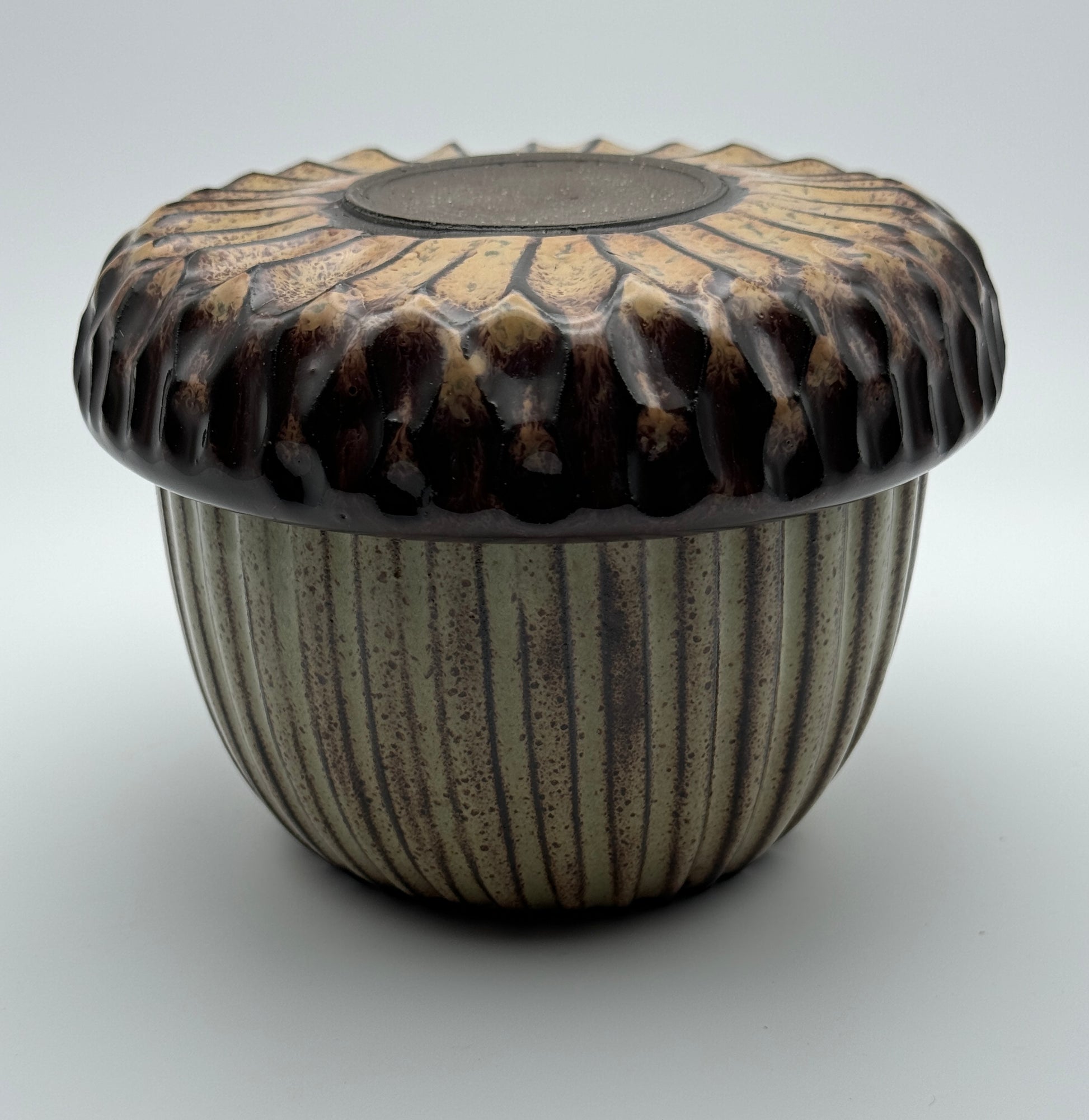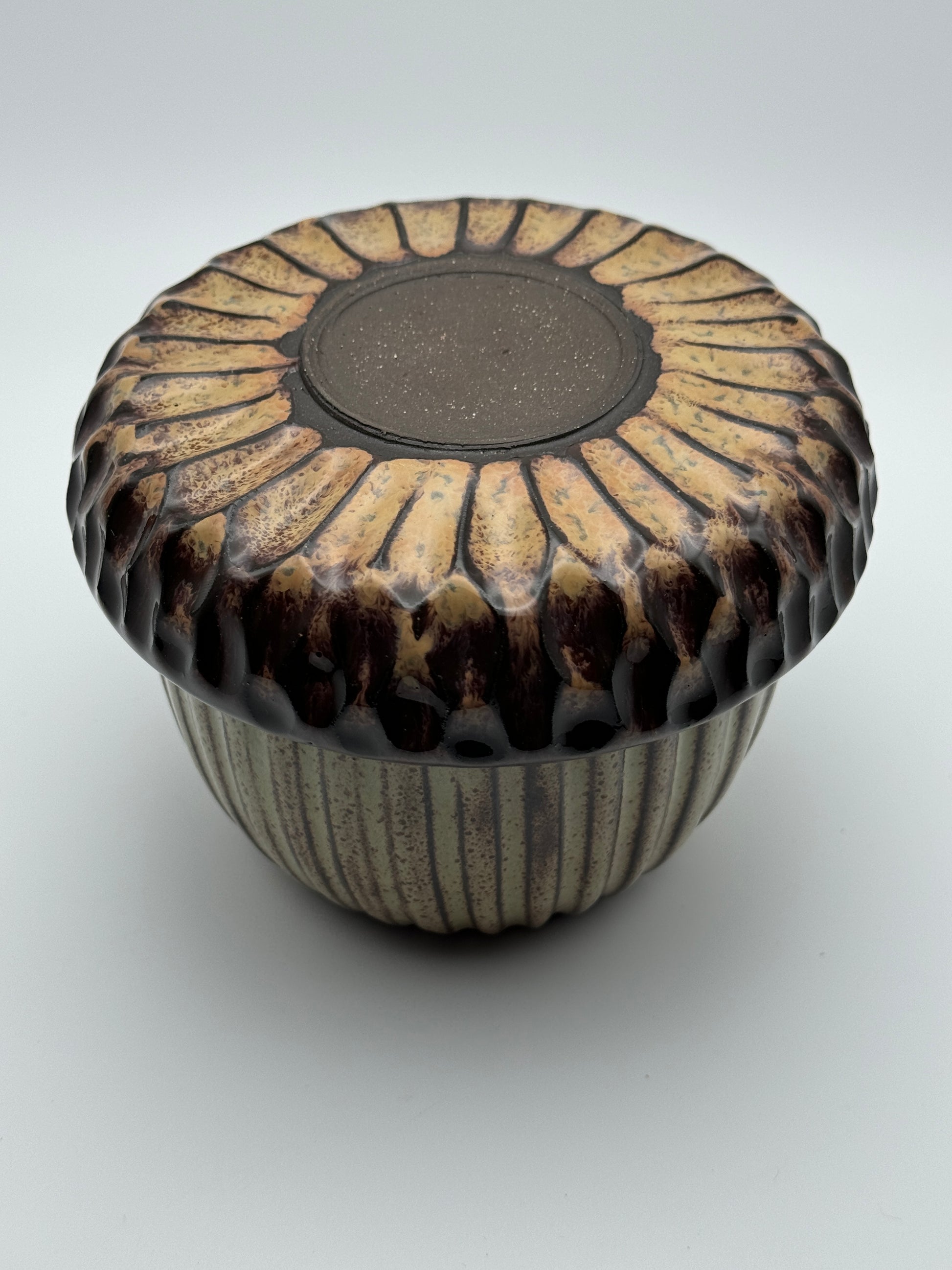 These pieces are inspired by a huge oak tree that is living its best life in my backyard. Every year it produces tons of acorns. These jars are an interpretation of those little acorns.